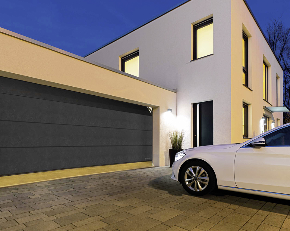 Sektionaltore öffnen senkrecht und liegen platzsparend unter der Decke. Durch dieses Konstruktionsprinzip bieten sie maximalen Platz in und vor der Garage.